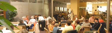 Café. Auf mehreren Ebenen mit unterschiedlich gestalteten Räumlichkeiten